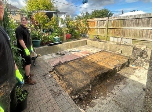 The client had a small concrete patio with water running back towards the property. The team created a new substantial soak away and replaced the patio with a matching retaining wall, steps and capping. We return to this client later this year to complete further works for the introduction of a summerhouse.